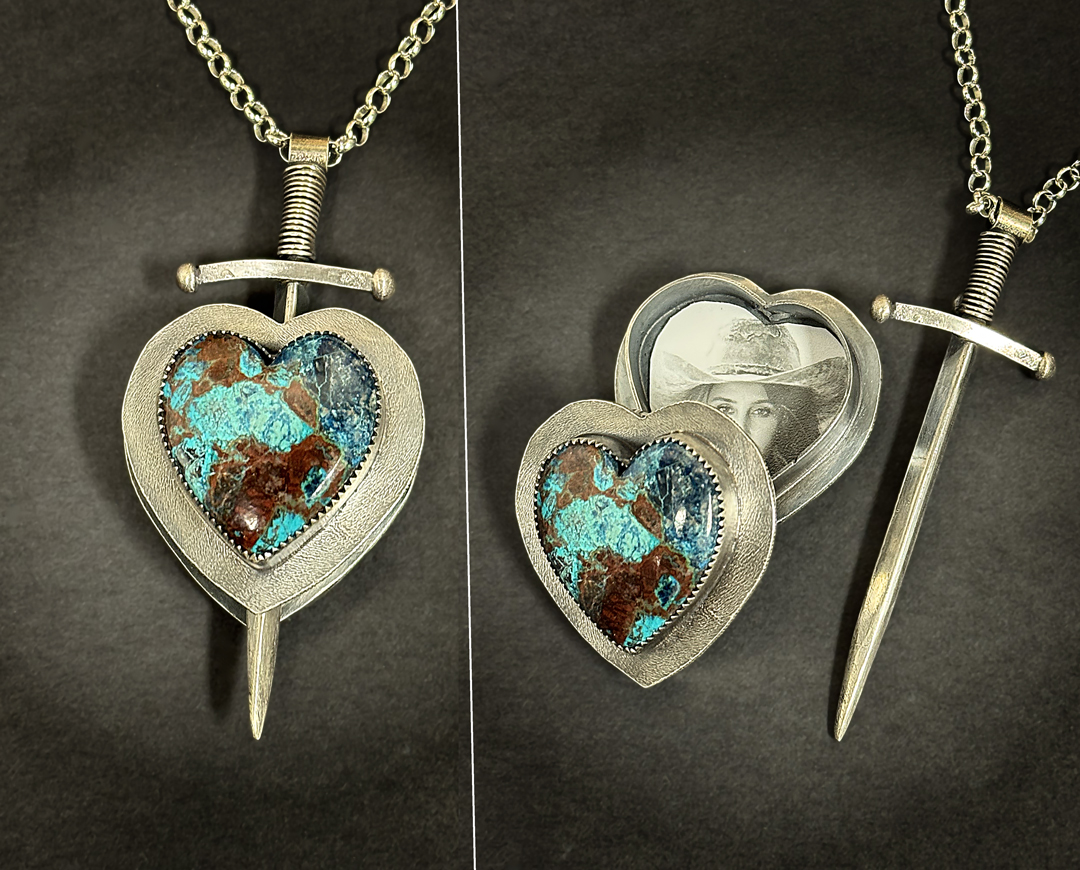 Unlike most lockets that operate with a hinge, In this workshop you will learn to fabricate a locket that uses a handmade sword to secure the two parts. . When finished, drop in a favorite photo, or other memento, and enjoy your new creation. There will be plenty to challenge you and will bring your fabrication skills to a new level.